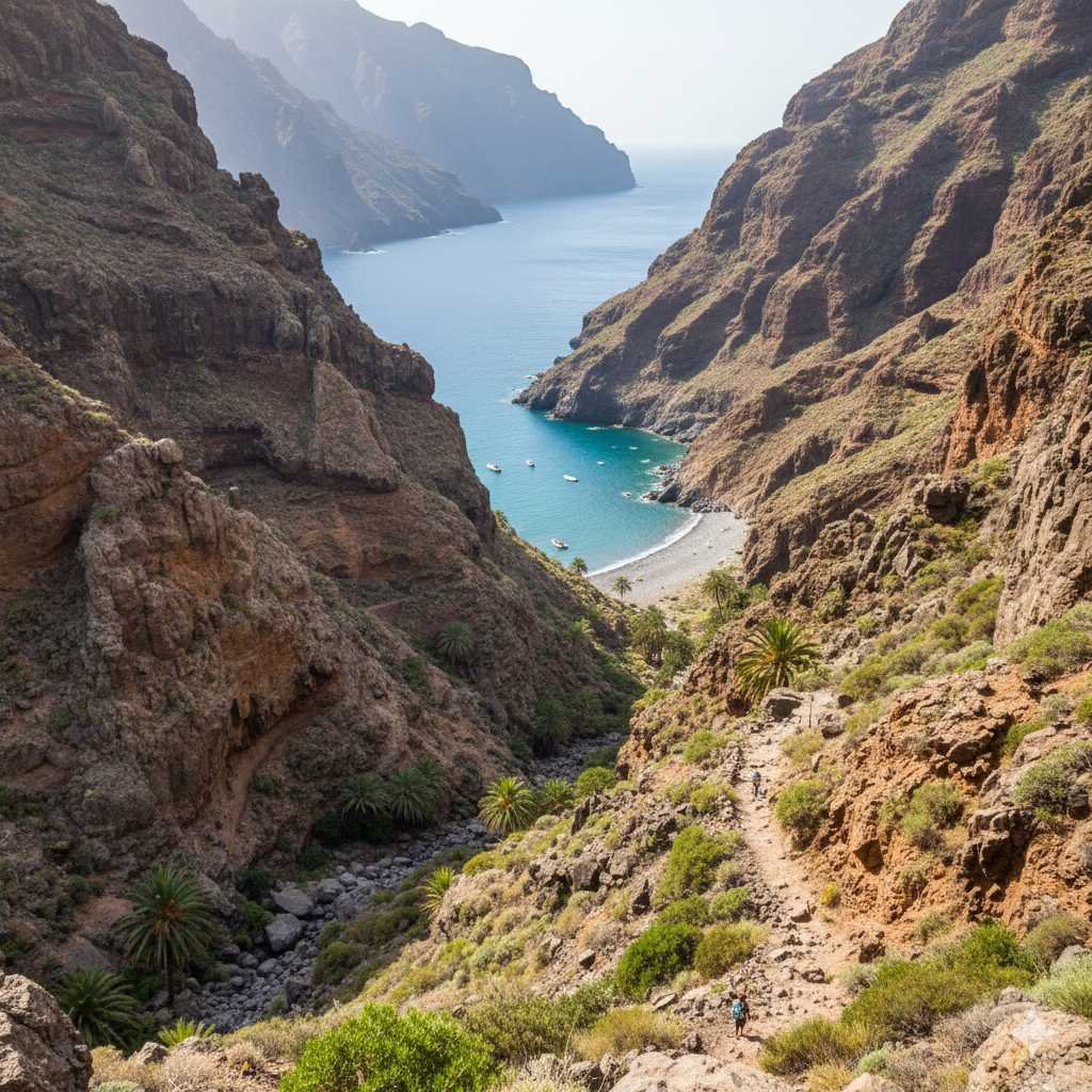 - Pflanzenwelt: Kakteen, Wolfsmilchgewächse und die Kanarische Pinie dominieren die trockenen Abschnitte, während Farne und Moose in den schattigeren, feuchteren Bereichen gedeihen.