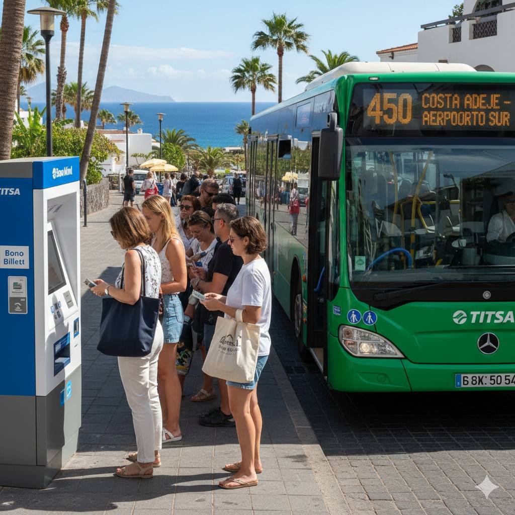 Die Fahrt mit der Linie 111 vom Flughafen nach Los Cristianos kostet mit der wiederaufladbaren tenmas-Karte deutlich weniger (meist um die 3,70 € bis 4,00 €) als die Barzahlung beim Fahrer. Für Ankömmlinge ist es ideal, die tenmas-Karte bereits am Busbahnhof im Flughafen aufzuladen.