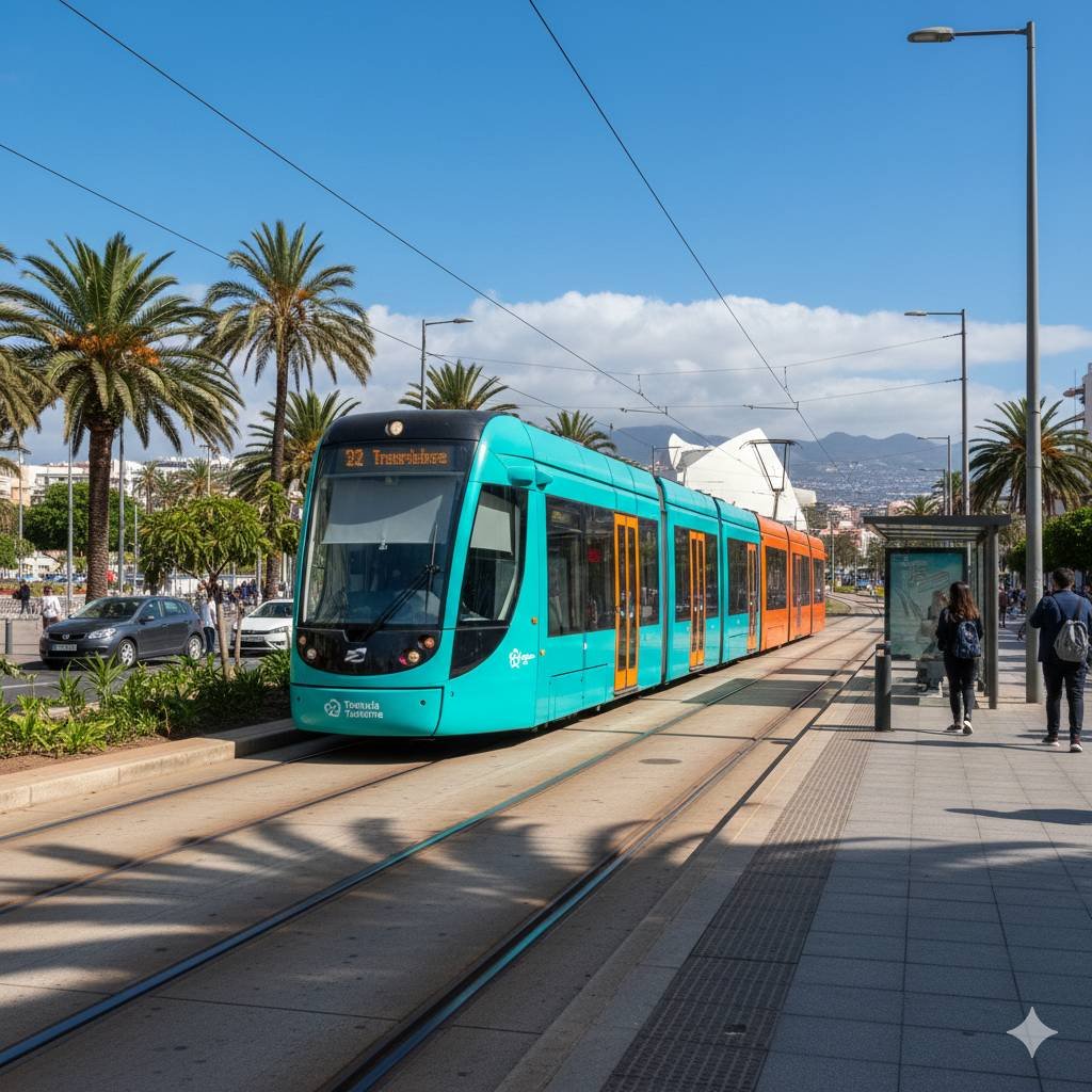 Die Straßenbahn, betrieben von Metropolitano de Tenerife, ergänzt das Titsa-Busnetz hervorragend, indem sie die beiden größten Städte der Insel verbindet: Santa Cruz de Tenerife und San Cristóbal de La Laguna.